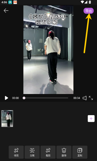 4、最后可对视频素材进行修剪、分割、裁剪等剪辑操作点击“导出”即可完成视频的剪辑创作