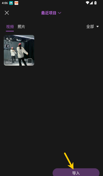 3、选择你需要的视频素材点击“导入”将视频导入软件剪辑使用