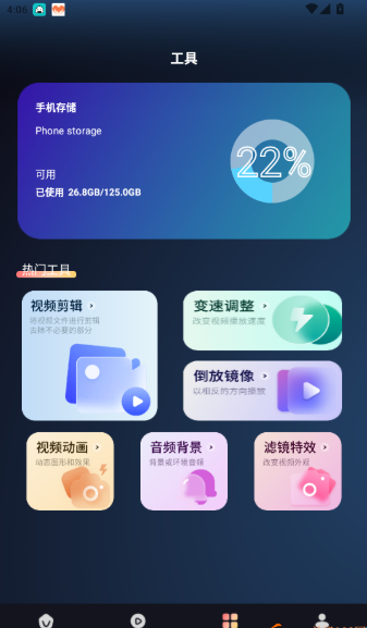 2、进入到工具页面中找到“视频剪辑”功能点击进入下一步