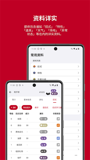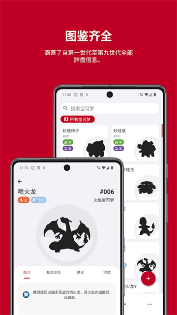 宝可梦图鉴APP的玩家可以通过这款软件查看各种宝可梦的图像、属性、技能、进化链、种族值等详细的资料,并且,软件还可以通过软件搜索各种道具的获取方法和攻略,诸如精灵球、解毒药、复活草、黄金喷雾、桃桃果等,为玩家带来实用的游戏服务。