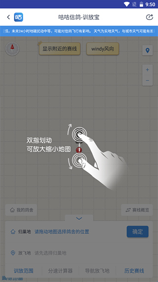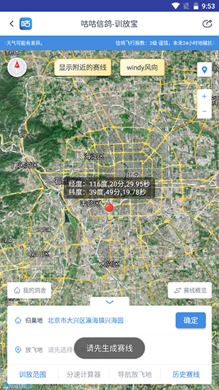 3、实用的个人训放工具-训放宝:训放是培养优秀信鸽不可或缺的一环。APP推出的训放宝功能,为广大养鸽爱好者提供了一个更方便、更全面的个人训放平台。通过训放宝,用户可以轻松绘制赛线,准确测量空距,随时记录训练数据。训放宝支持历史数据保存和对比分析,便于用户总结经验教训,不断优化训放方案。这一功能对于提升信鸽的整体素质有着积极意义。