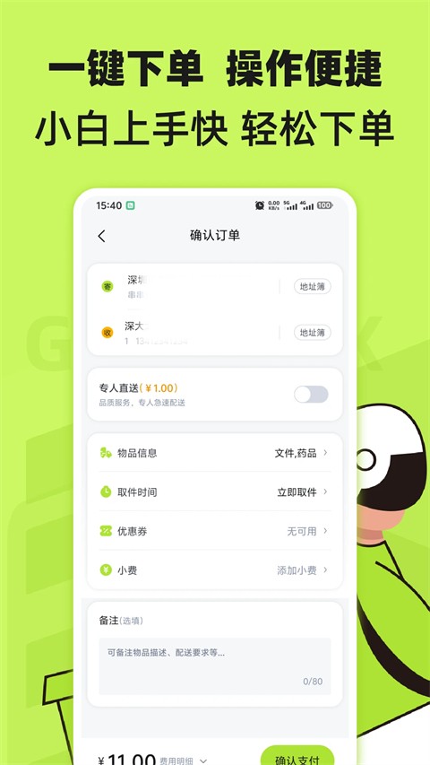 裹小递App是一款同城寄送、专人专送、限时送达的急送服务平台,旨在为用户提供高效、便捷、贴心的生活体验。配送类型多样,涵盖同城急件、文件、发票、鲜花、蛋糕、美食、生鲜等多种类型,以严标准的配送服务,只为给用户带来更加的体验。应用操作简单,下单后,平均1分钟响应,20分钟上门,60分钟送达全城,更有上万名配送员在线为用户提供服务。