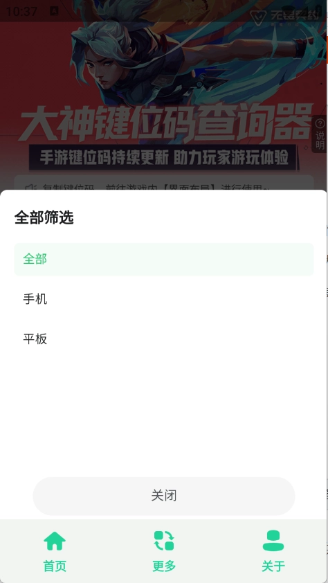 1、打开无畏键位助手点击筛选选择设备类型(手机/平板)。
