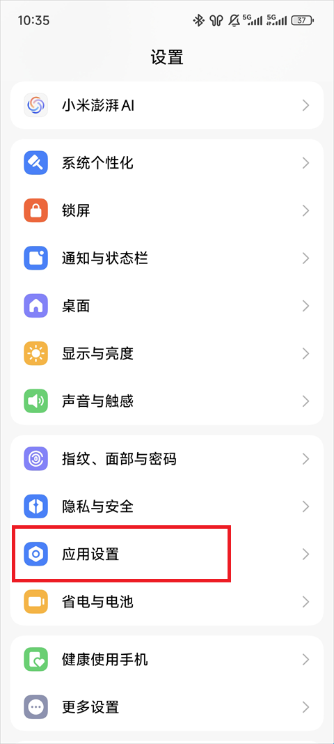 1、打开手机设置,点击进入应用设置。
