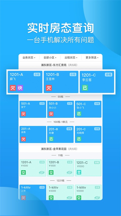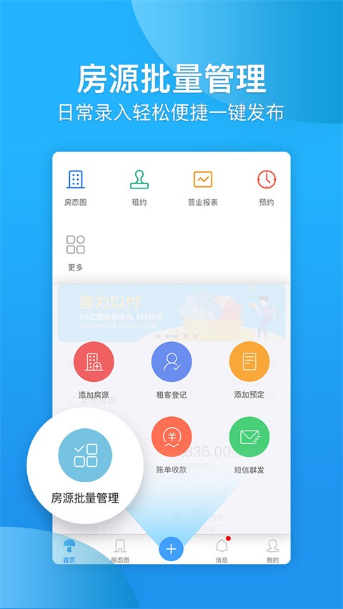 3、房源管理:批量录入房源,实时掌控房源动态。
