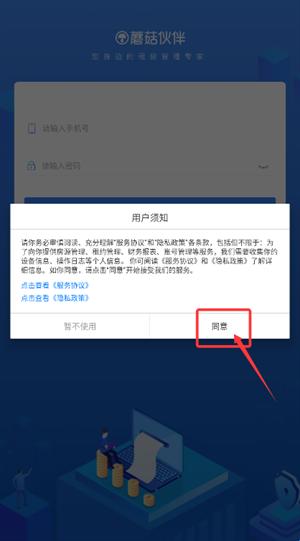 1、首次启动需阅读用户须知与隐私政策,确认同意后方可进入登录页。