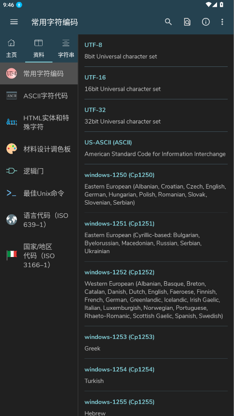 3、打开资料页面,整合了丰富的编码,代码和特殊字符内容。