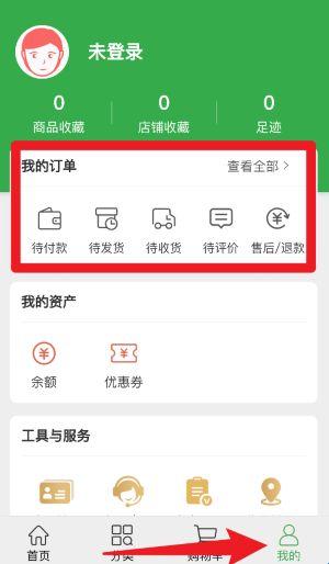 4、在我的页面中可管理订单状态,包括待付款、待发货、待收货、待评价及售后退款等流程。