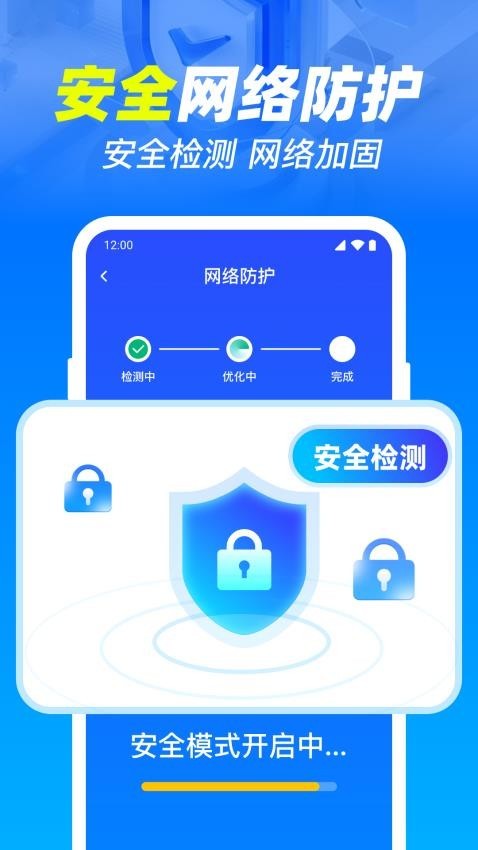 5、安全高速:支持用户可以在线安全高速的进行上网,在线加固用户的网络,进行安全检测。