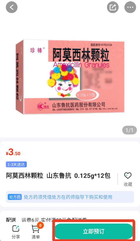 5、在购药页面点击立即预定,之后再填写药品需求登记,这个是采用配送的形式,需要两三天才能送到。