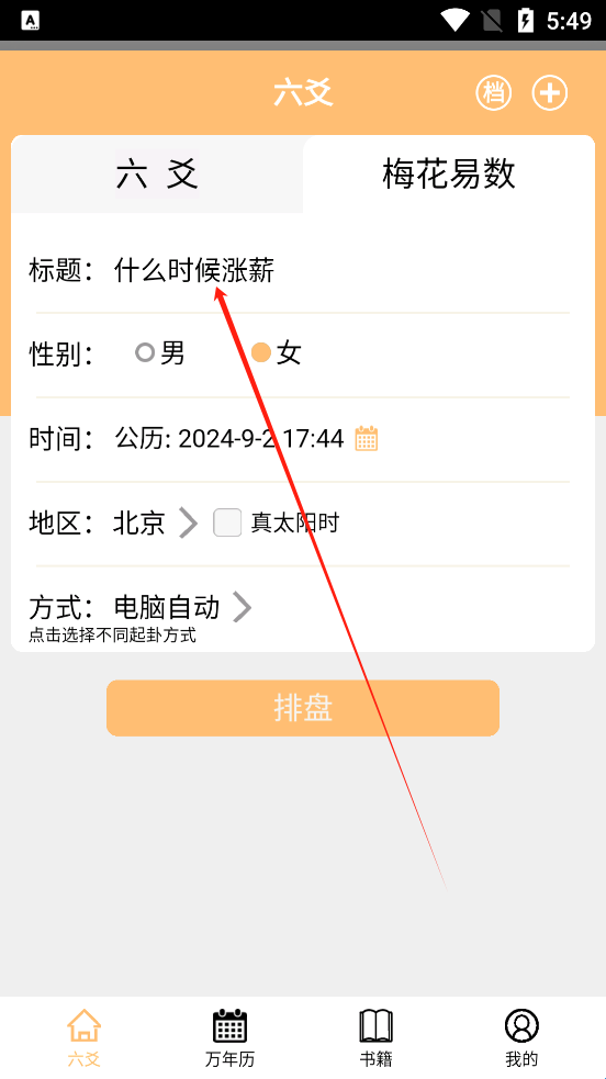 1、登录进入后,输入自己想要问的问题后,点击排盘