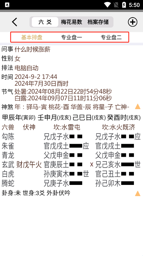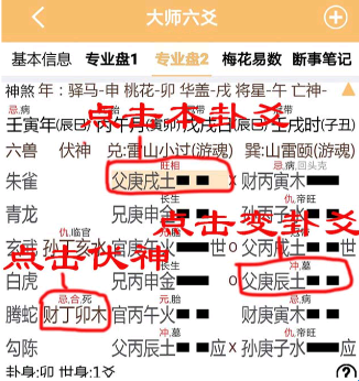 (2)专业盘2点击本卦爻,伏神,变卦查看提示