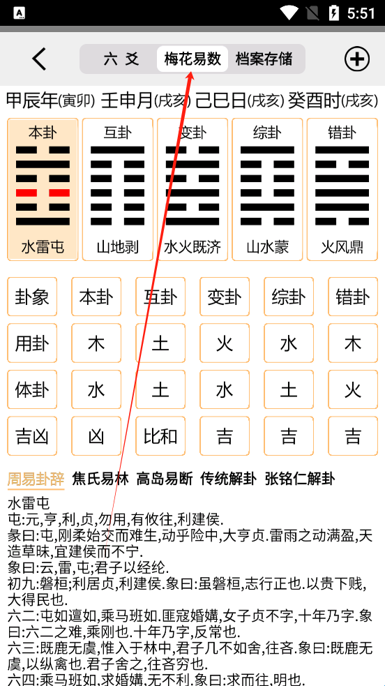 3、点击梅花易数来看解盘