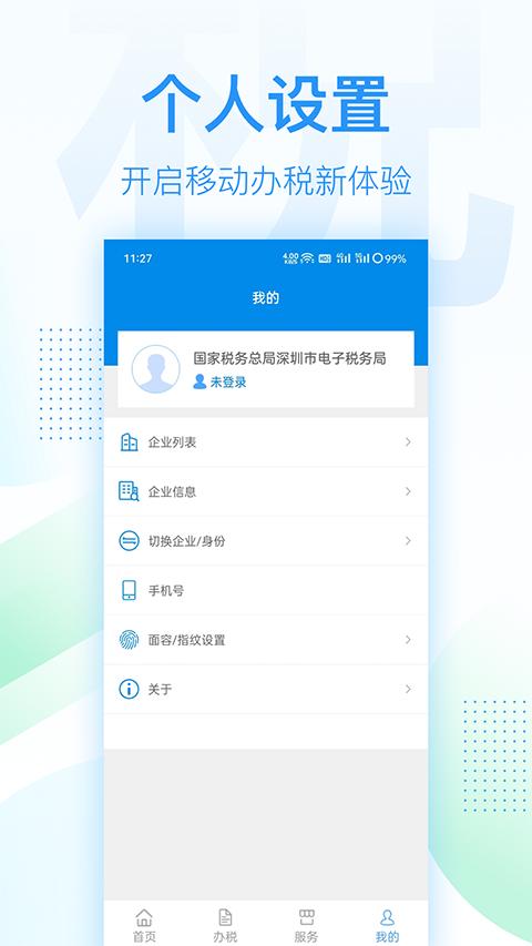 1、深圳税务个人设置,开启移动办税新体验。