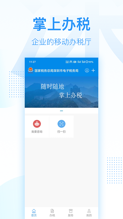 深圳税务app是专为深圳市打造的移动办税软件,其便利了深圳市民办理税务。用户使用软件后在手机上就可以随时随地的办理税务,轻松完成税务申报、查询、缴纳等操作,实现了真正的移动化办税体验,为市民纳税提供了高效的办税服务,省去了前往税务局的繁琐步骤,还大大缩短了办税时间,既方便了市民生活,又降低了办税成本。