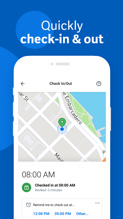 3、员工可以随时查看或请求休假,签入和签出工作。