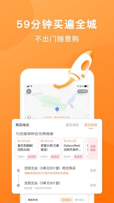 4、全城帮买:从咖啡、烟酒到早餐、药品、零食等日常用品,用户只需通过app下单,即可享受代买服务。