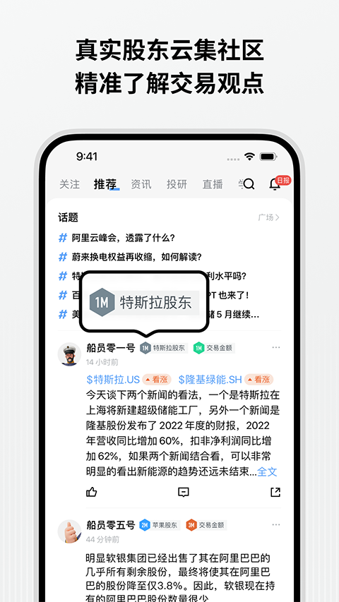 6、长桥社区:与300位投资高手在线交流。真实晒单,价值投研,大V观点更可信。