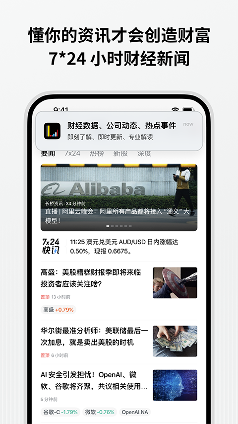 4、24x7全球财经热点追踪、市场热点解读、人工智能内容推荐,助您洞悉市场全景,服务价值投资。
