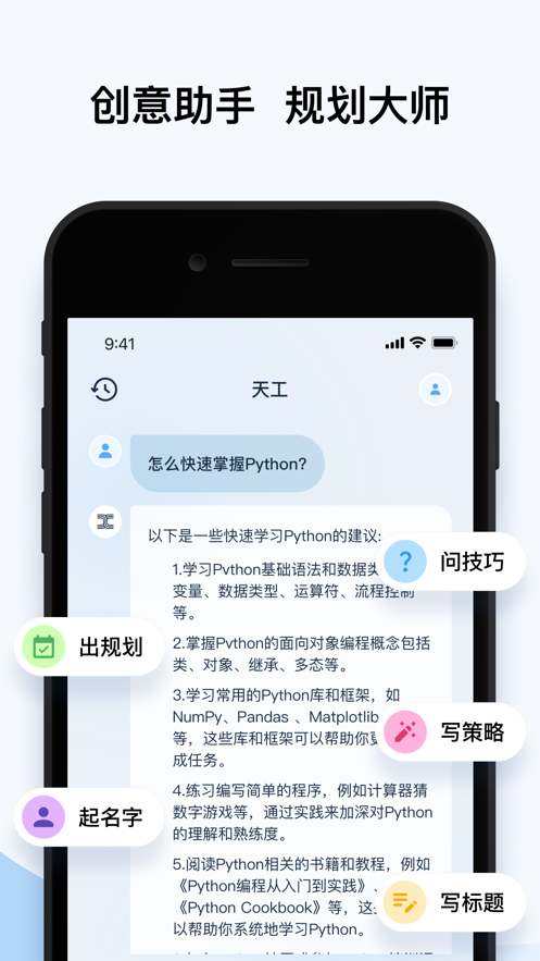 4、教师:考试出题、教学设计、学生评语、学期总结……不懂的地方就找天工,需要写作的时候就找天工!