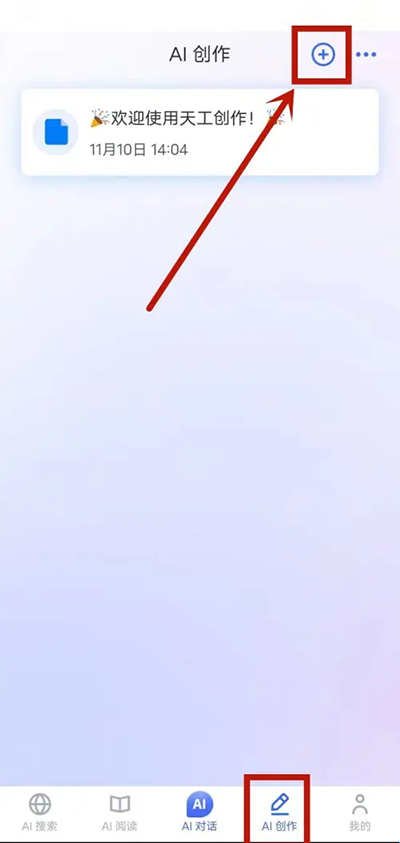1、打开软件,AI创作项目点击右上角添加图标。