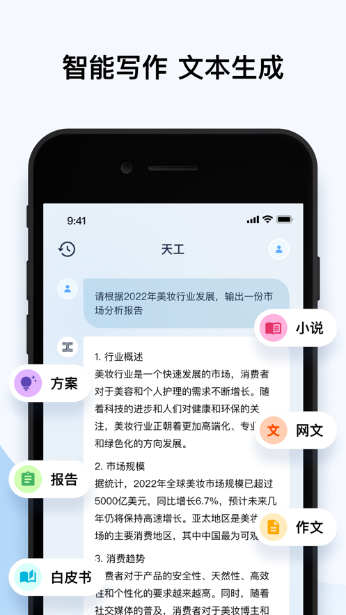天工ai查询是一款具备超强DeepResearch能力的全新智能Office三件套产品,助你专注思考、释放创造力。这是首款基于AI Agent架构打造的Office智能体手机应用,天工ai查询APP有个超酷的核心理念——“8分钟完成8小时工作”。它通过文档、PPT、表格和通用这四大智能体齐心协力地工作,直接把移动办公的效率拉到了新高度。