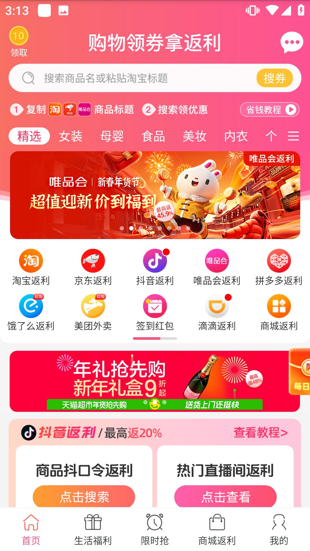 3、全网商城有返利:全网返利,一键直达,返利多至80%。