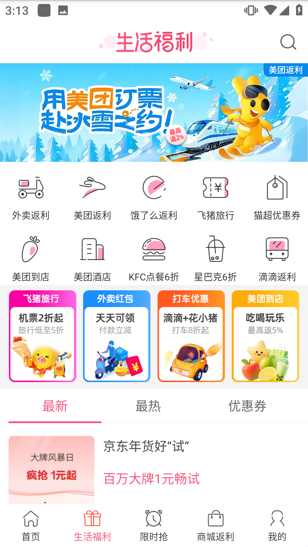 1、新人零元购:新人专享好物0元购,各种精选好物0元购得,赶紧来挑选属于你的免单大礼吧