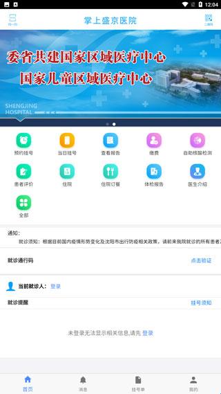 1、在本站下载掌上盛京医院app,注册或登录一个账号。