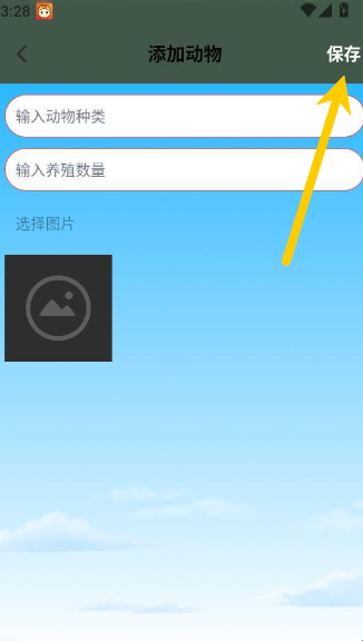 4、在添加页面中填写动物的种类和养殖数量以及照片,然后点击右上角的保存,就添加成功啦!