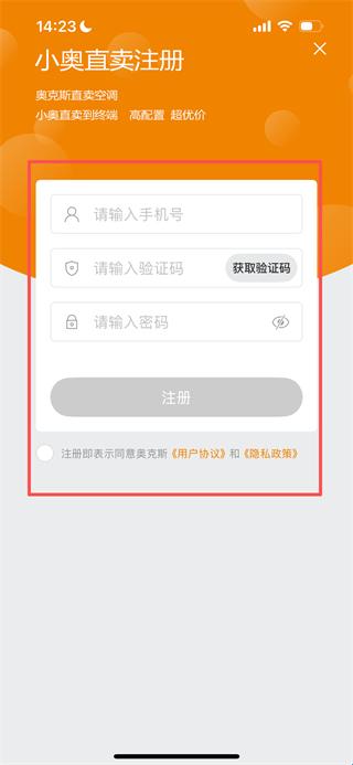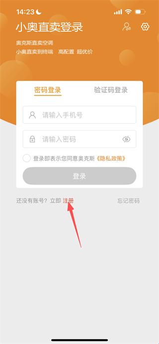 2、在登录页面点击“立即注册”选项,进入小奥直卖的注册页面。