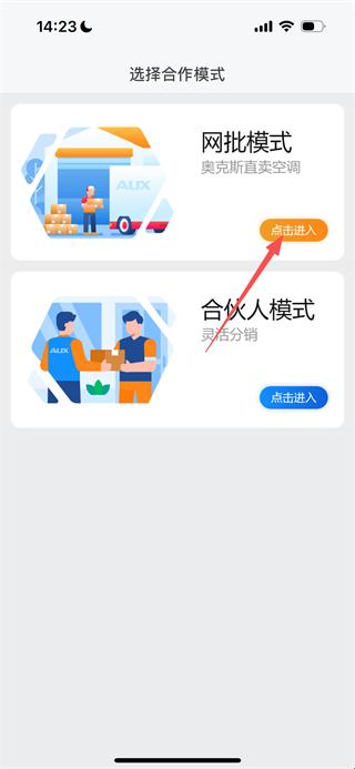 1、在合作模式选择页面,点击网批模式对应的“点击进入”按钮,即可跳转至登录页面。