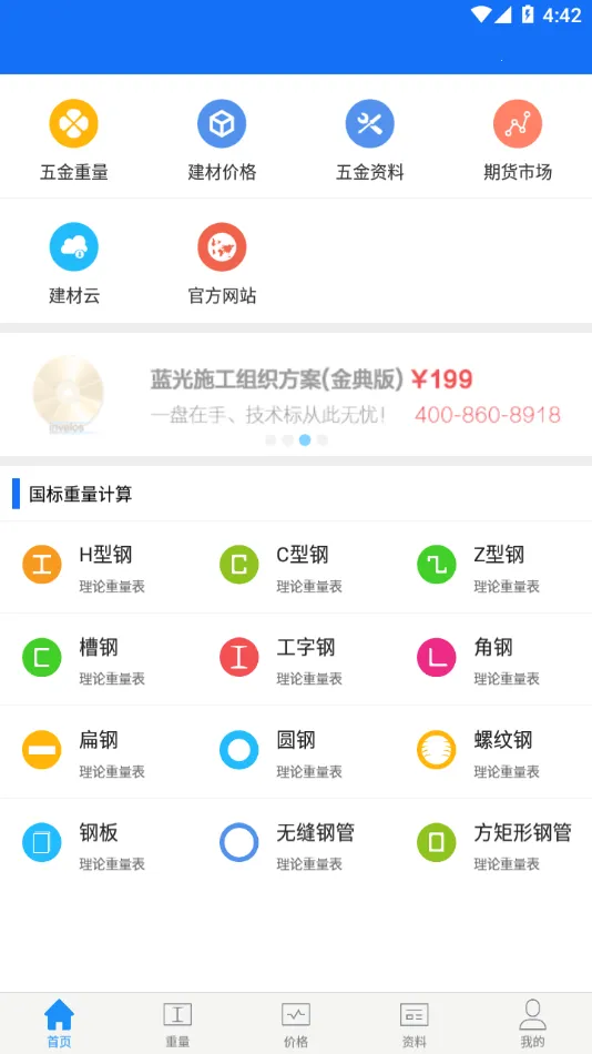 1、专业权威:提供建设行业常用五金材料理论重量、规格、密度、计算公式、市场价格等信息,100多种钢材理论重量采用最新国家标准。