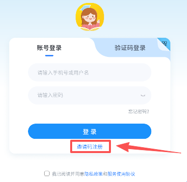 2、进入到页面会点击邀请码注册。