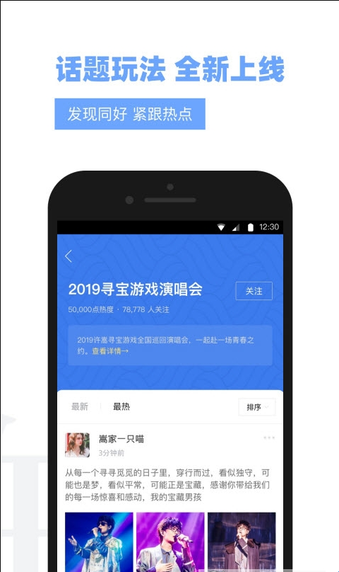 3、圈子广场设置多个频道,可发帖与许嵩及其他用户互动,还可以点击“关注”查看关注人的最新动态。
