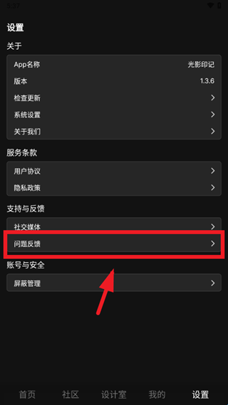 光影印记app怎么反馈问题?