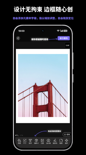 1、自由设计边框与水印:强大编辑器支持你自由创作!从边框样式、文字排版到图标组合,所有元素皆可自定义,打造你的专属风格印记。
