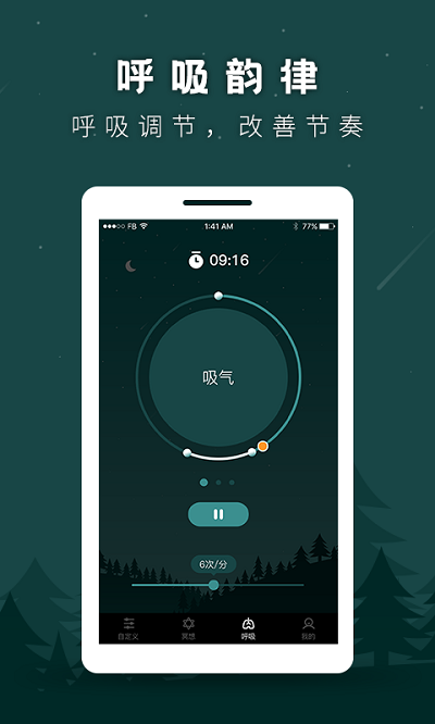 4、使用呼吸训练功能跟随动画指引调整呼吸节奏,通过腹式呼吸练习提升身心平衡与放松效果。
