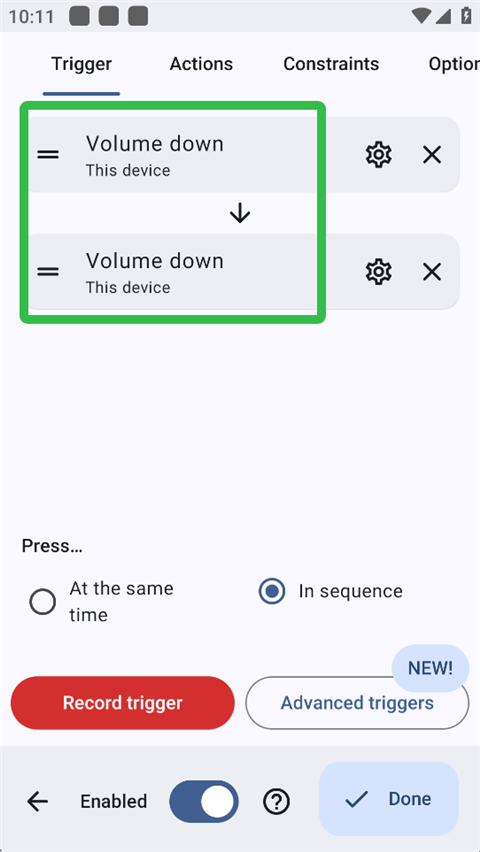 2、点击红色图标【Record trigger】,记录事件。