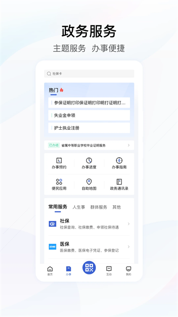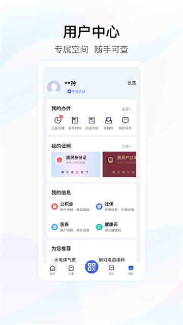 4、电子证照亮证:集合健康码、电子社保卡、医保电子凭证等多种电子证照,代替实体证照使用。