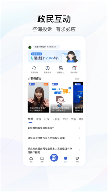 湖北政务服务网其实就是鄂汇办,一款非常好用的手机政务服务办理软件哟,里面有很多功能非常的方便大家办理各种便民服务业务,还有很多咨询消息能够第一时间了解到,还开设了人社、医保、公积金、教育等政务办理,内容丰富,办事更高效,节省用户的的办事时间与流程,真正做为用户着想,需要的就快来下载吧。