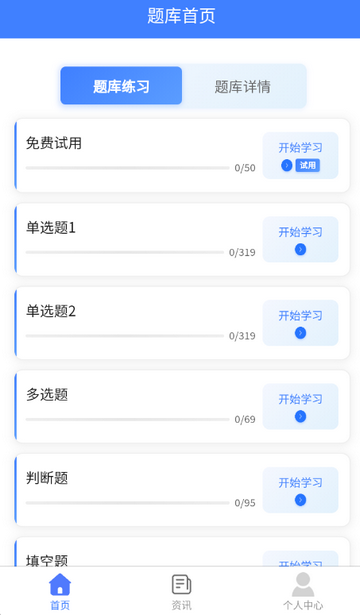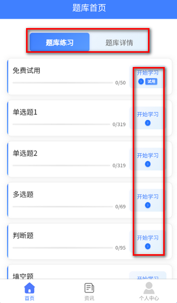 3、进入首页,可开始刷题,也可以查看错题等