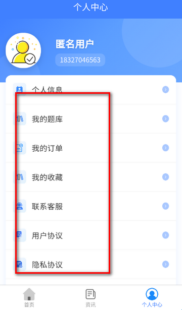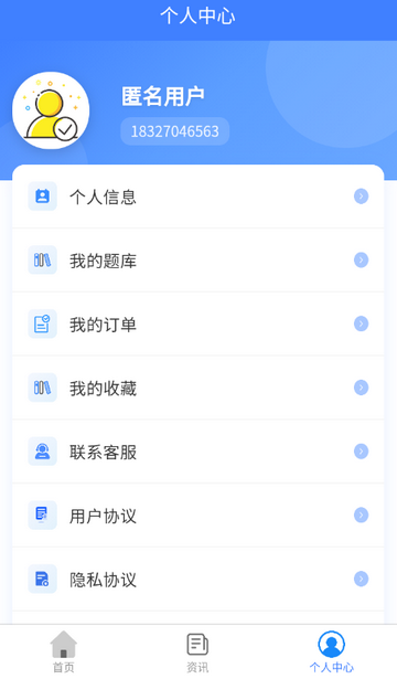 5、登录后可查看我的题库/我的订单等