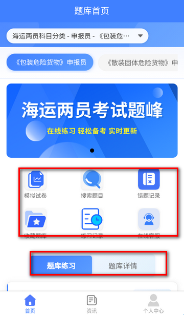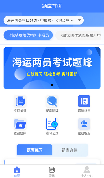 包含(包装、散装液体、散装固体)申报员、装箱检查员考试的所有知识点,涵盖模拟考试、章节练习、随机练习、错题重做、收藏等功能模块,学员通过章节练习来判断自己缺失的知识点和薄弱环节,通过错题重做功能,来补足学员短板,助力考试通关!我们的题库包含了海运两员考试的高质量试题(含历年真题),通过在线刷题,在线模拟考试,错题精准练习,可以帮助您提高学习效率,巩固学习效果,快速通关海运两员考试。