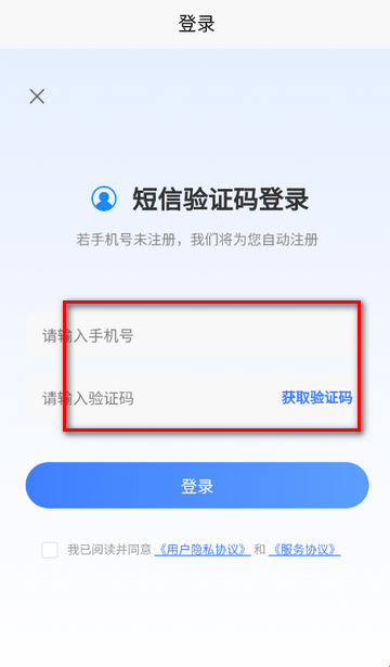 2、输入手机号验证码即可完成登录/注册