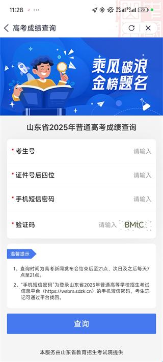 2、点击高考成绩查询
