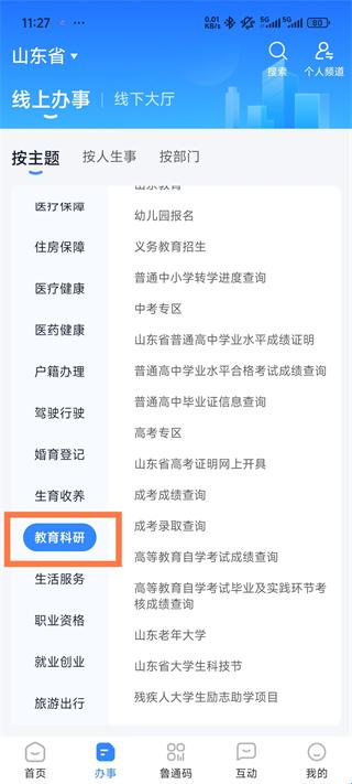 1、打开爱山东App,点击办事板块【找到教育科研服务】