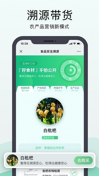 3、溯源带货:每个产品都有独特的溯源码,为用户提供购物信心,放心选购。
