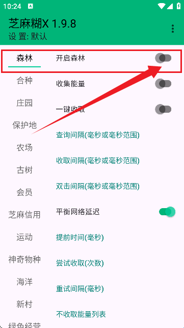 5、接着点击我们的森林,在这里您可以开启森林自动收集能量以及是否开启一键收取的开关。