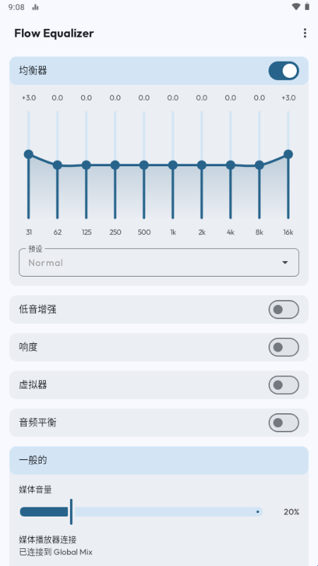 Flow Equalizer是一款功能强大的音频增强应用,专为发烧友和普通听众设计,提供全方位的音频优化体验。它支持最多 12波段均衡器,用户可以根据不同音乐类型和播放环境精确定制声音频率。应用还配备独特的音量增强器、高级限制器、低音增强器和 3D虚拟器,提升音质的同时防止失真。